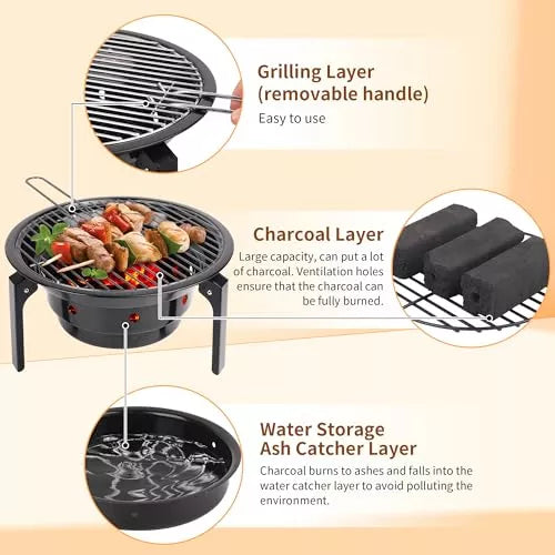 ¡Asa deliciosos alimentos donde quieras! Esta parrilla de carbón portátil es perfecta para picnics, camping o días en la playa. Incluye bolsa de transporte para mayor comodidad.